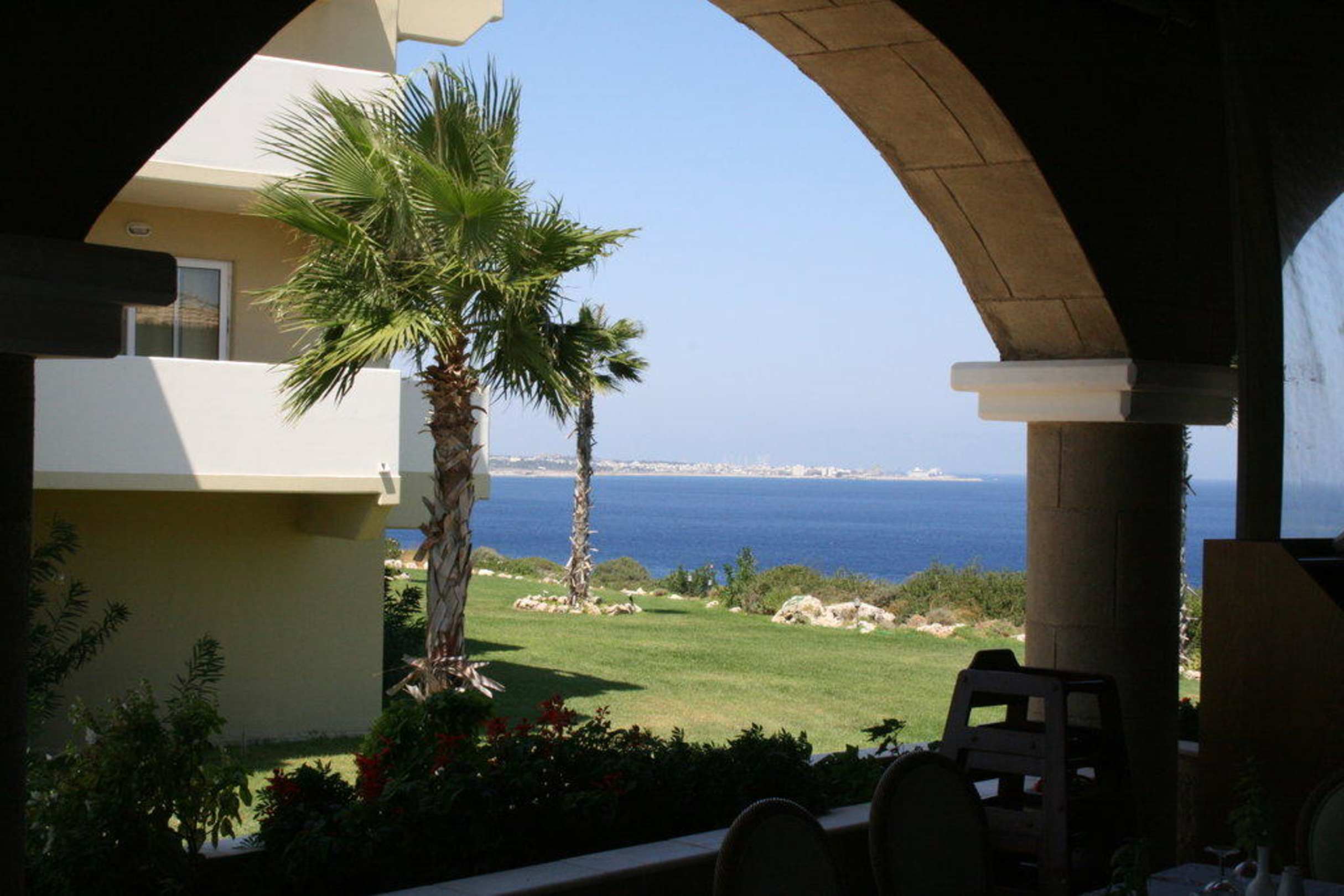 Ein schöner Blick nach Rhodos Stadt vom Hauptrestaurant aus
