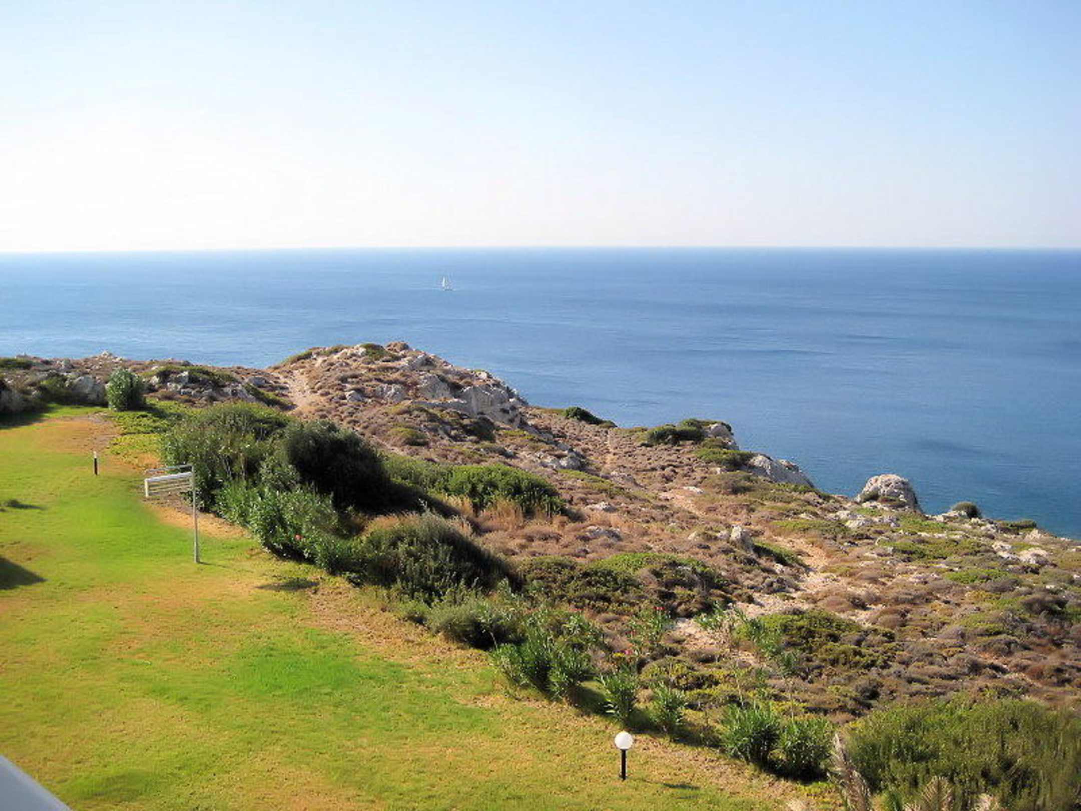 Blick zum Mittelmeer vom Balkon unseres Zimmers (Hotel "Kalithea Mare Palace")