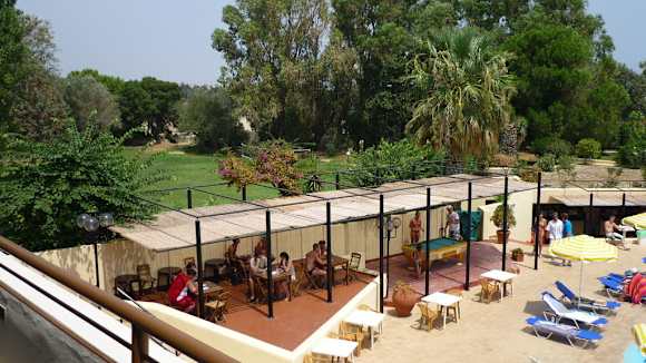 Blick vom Balkon (Haupthaus) Richtung Snackbar