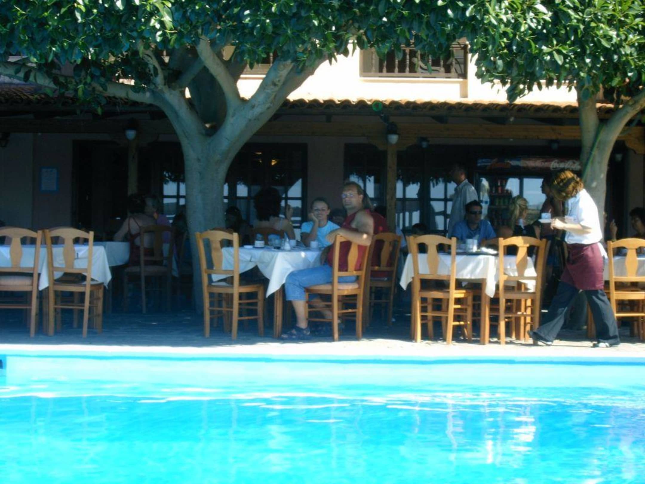Hier kann man am Pool sein Essen zu sich nehmen.