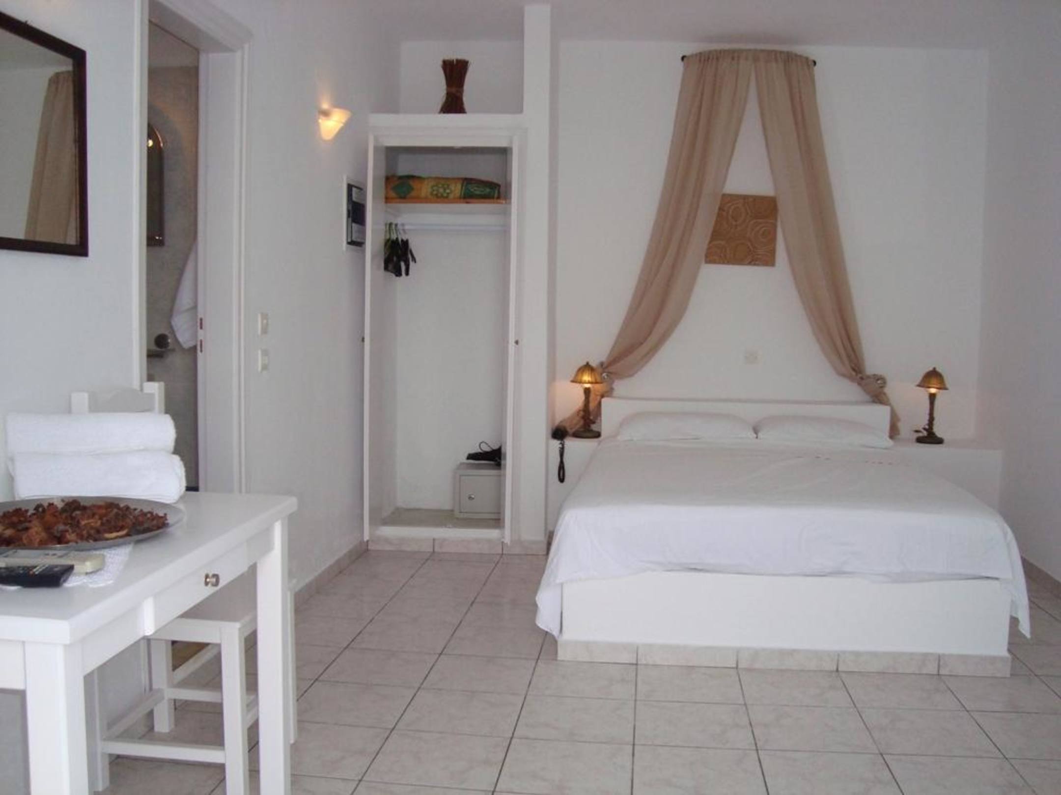 Studio 7Alles in weiss und ein hartes Bett nur 1,40 m breit!!! Einfache Ausstattung aber ausreichend, jedoch bei Hauptsaisonpreis zu teuer!