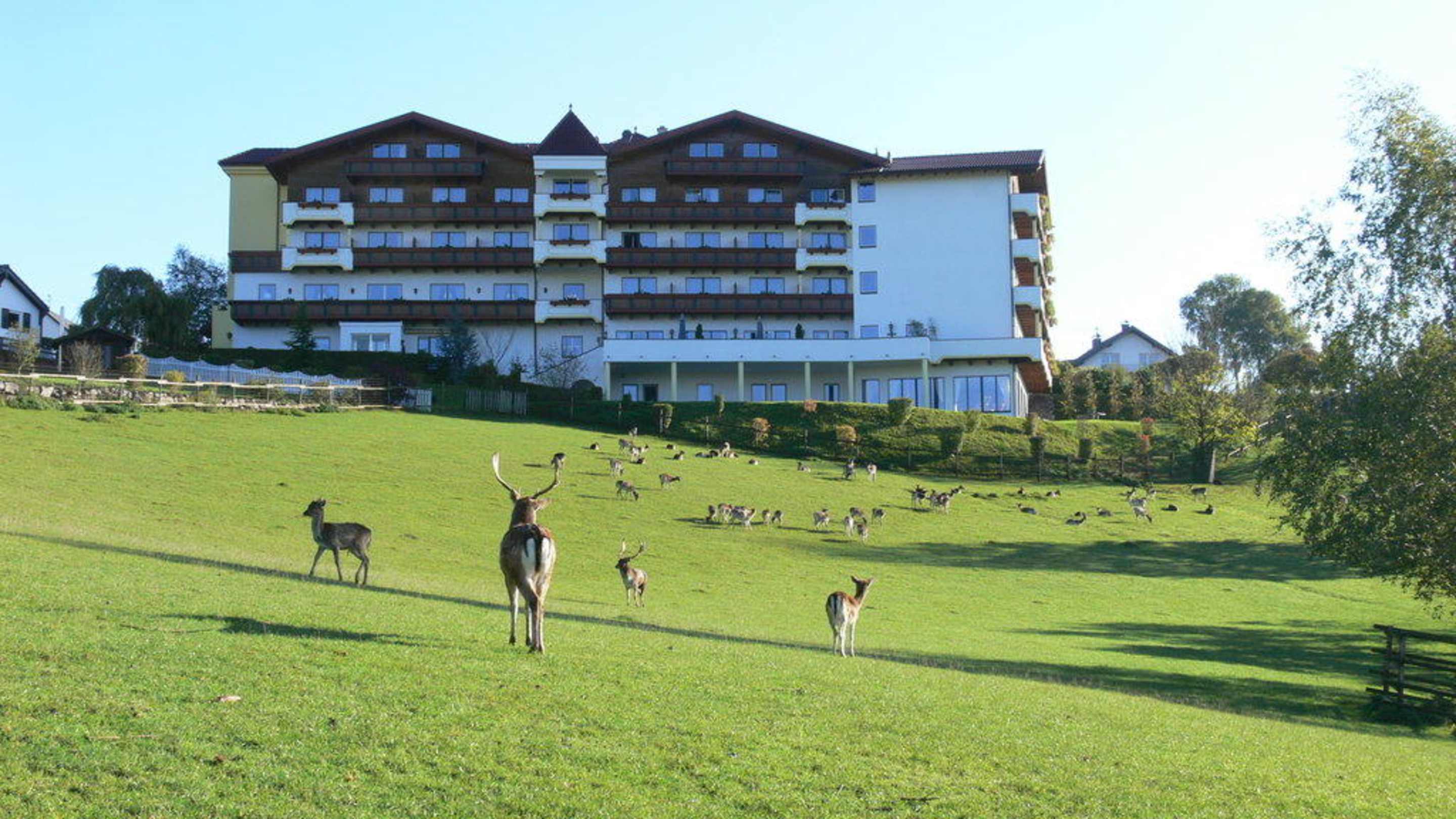 Blick vom hoteleigenen Wildpark auf das Haus Kastenholz