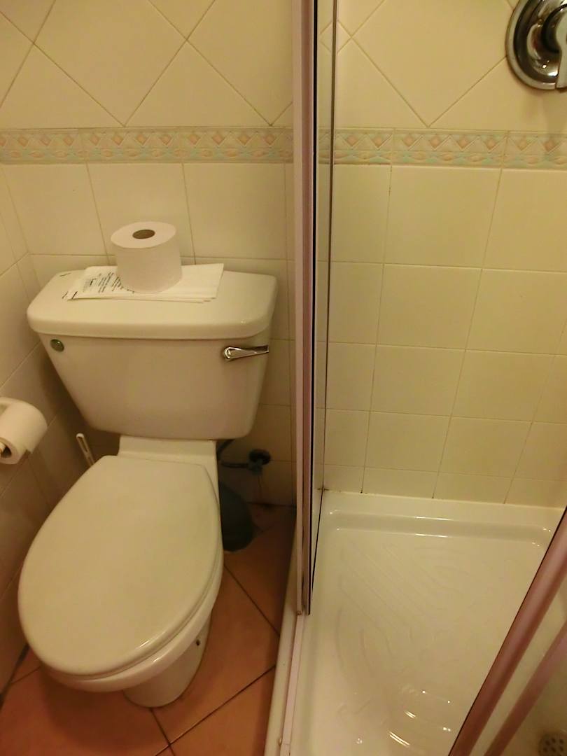 Zimmerrenovierungsbedürftig, da Schimmel hinter der Toilette und auf den Fliesen