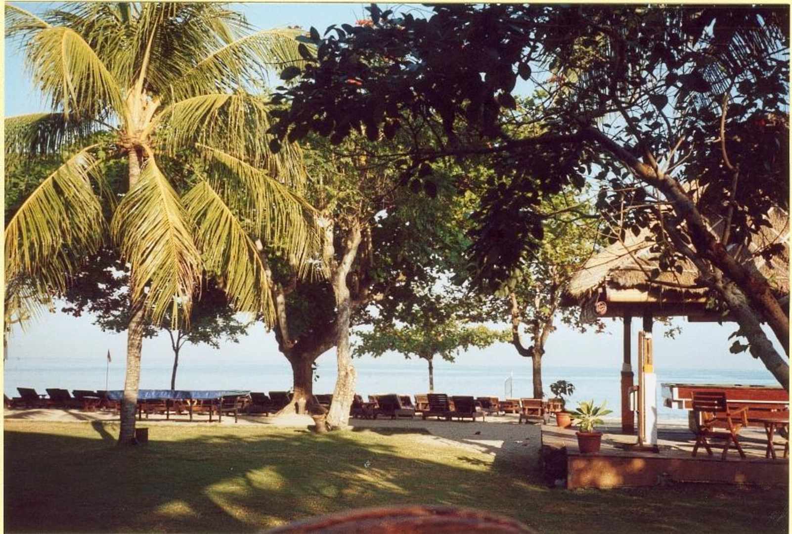 Blick beim Frühstücken auf den Stand und das Meer