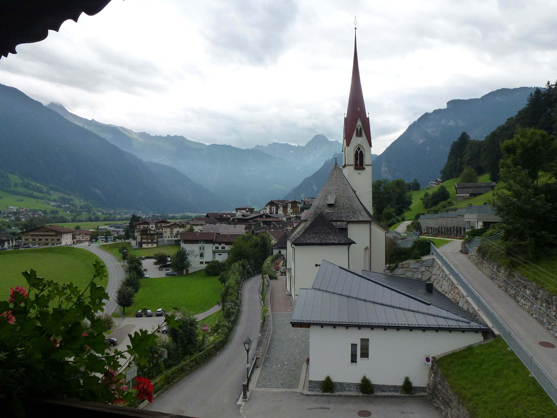 Blick über die Terrasse des Hotels in Richtung Mayrhofen