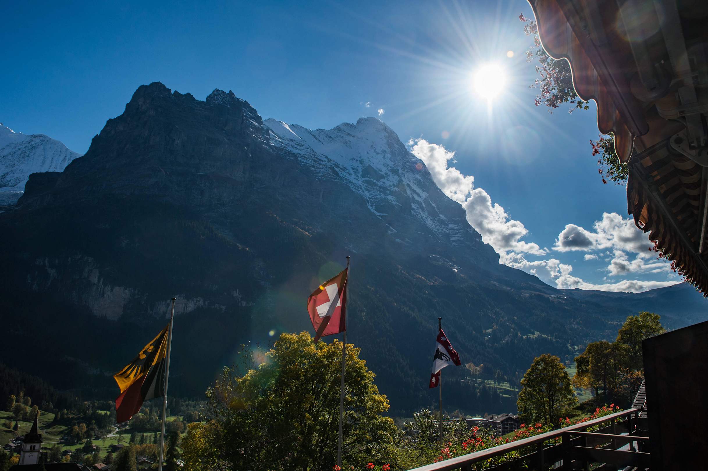 Blick auf den Eiger von Terrasse des Zimmers 105 au