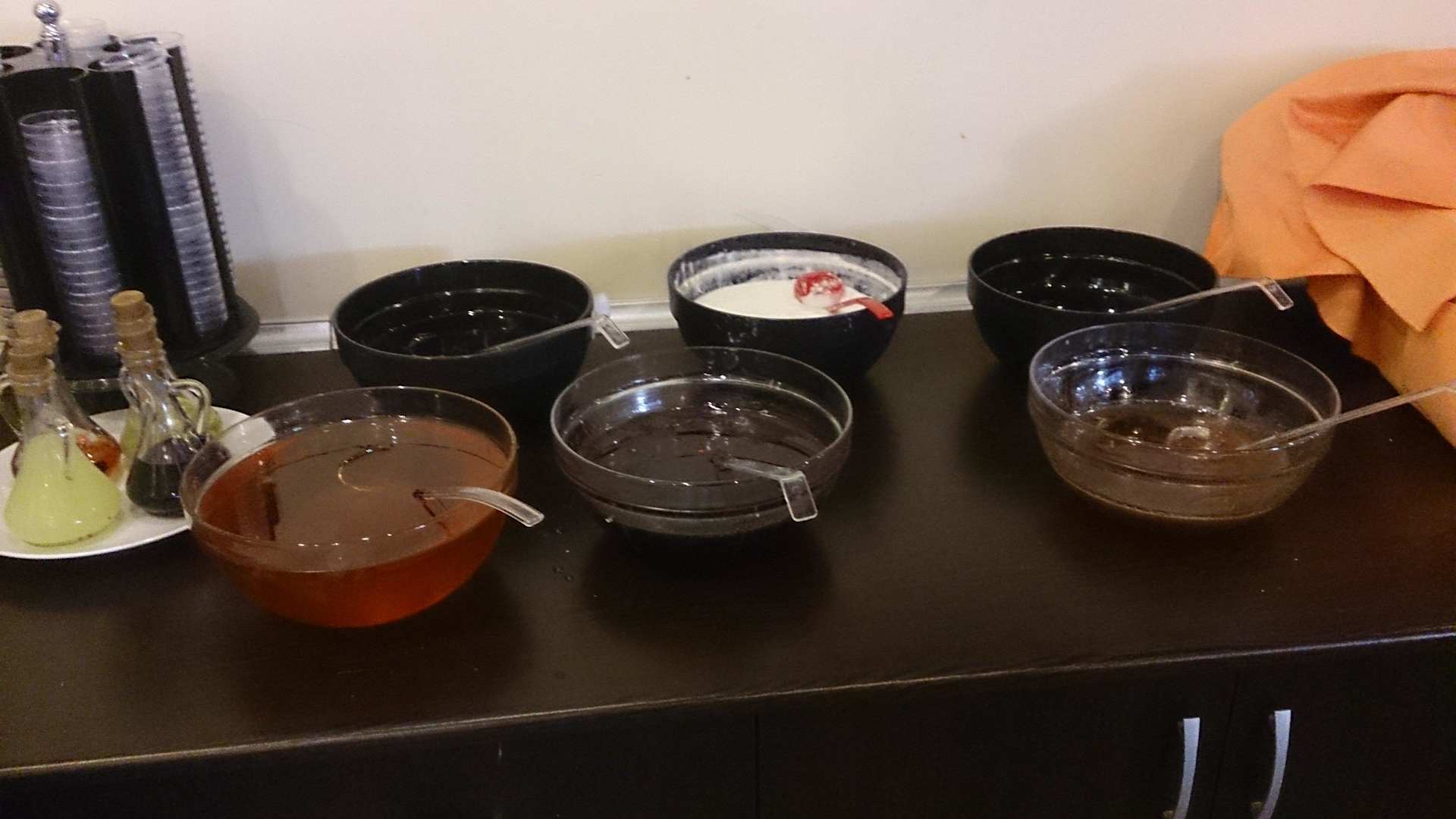 Neuer frischer Aufschnitt wurde einfach von Tag zu Tag neben altem Vortagskäse (dunkler) auf einer Platte gereicht! Mehr Info unter nächstem Foto