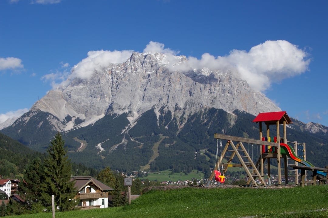 Am frühen Morgen ein Blick aus dem Zimmerfenster, vom Balkon, auf das Zugspitzmassiv. Da geht das Herz auf, auch noch nach dreißig Jahren.
