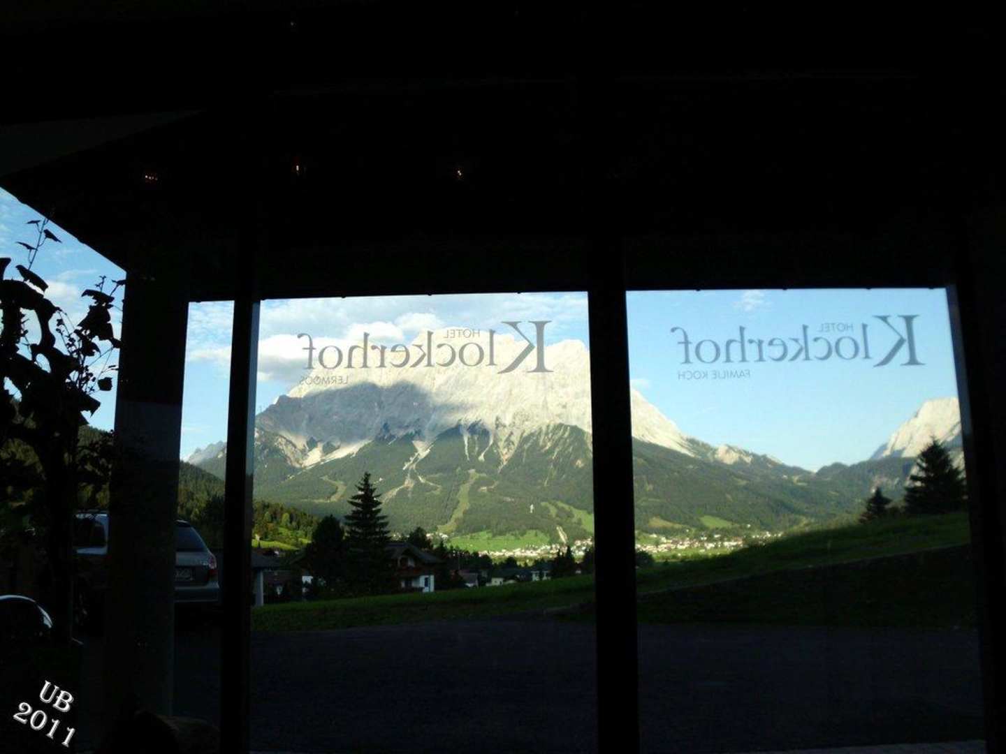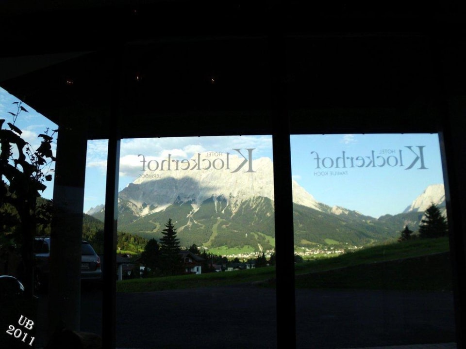 Blick zur Zugspitze durch Eingangstür/Lobby