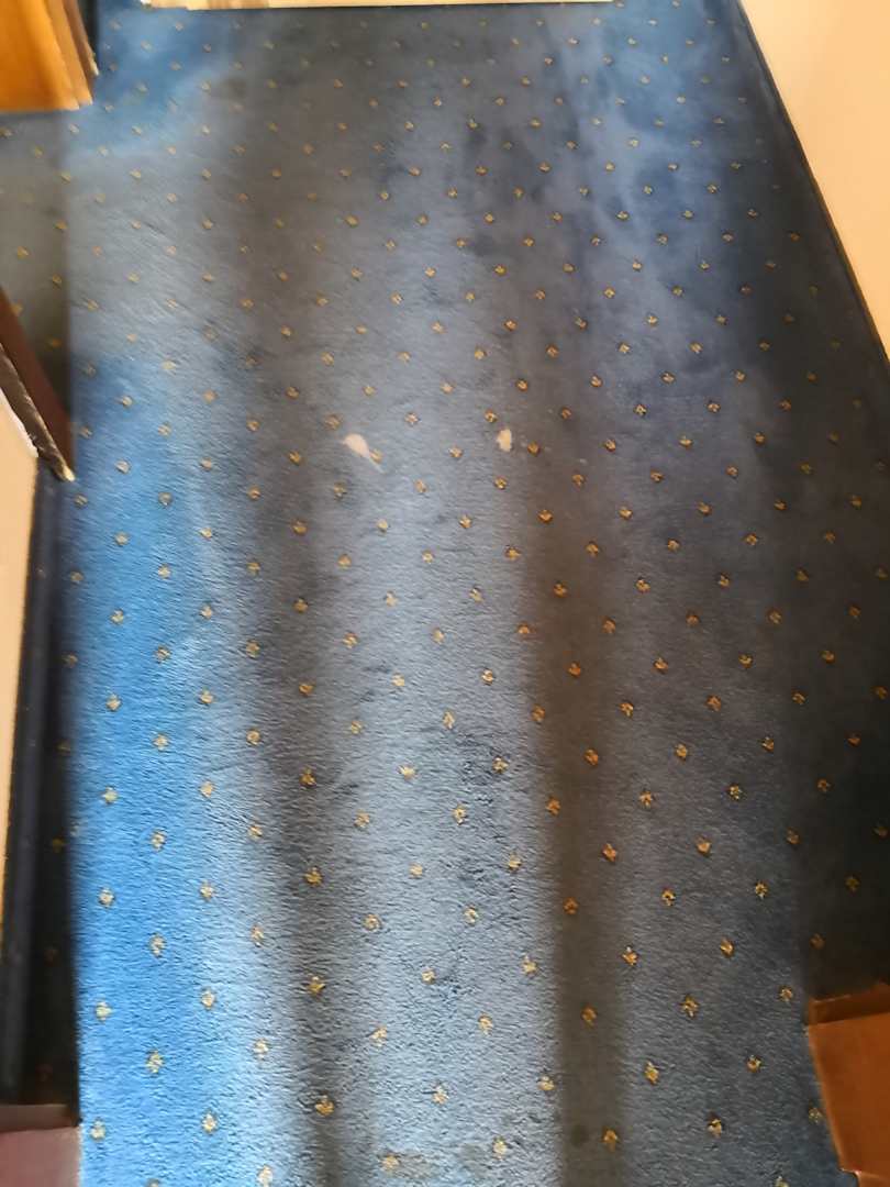 Fleckiger Teppich.