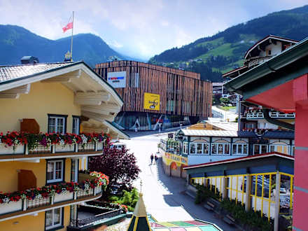 Blick vom Balkon zur Talstation der neuen Spieljochbahn, die seit Dezember 2017 in Betrieb ist.