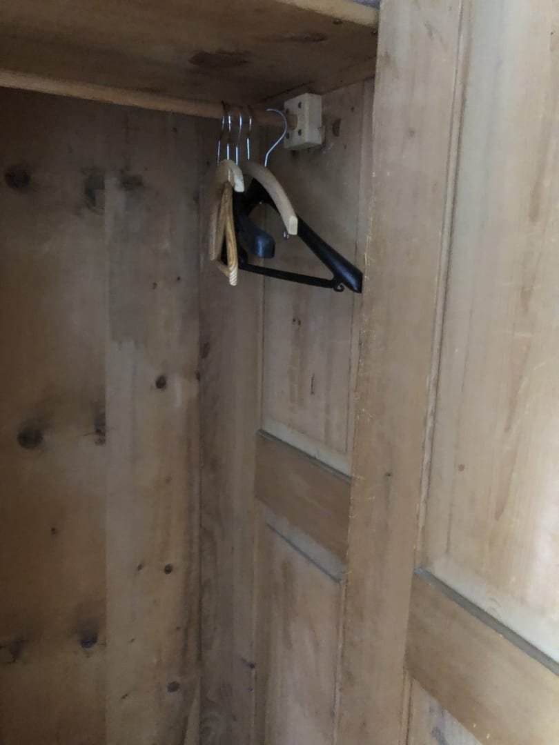 Schrank hielt an einer Schraube, es war nur EINE Zusatzdecke da, für 2 Personen