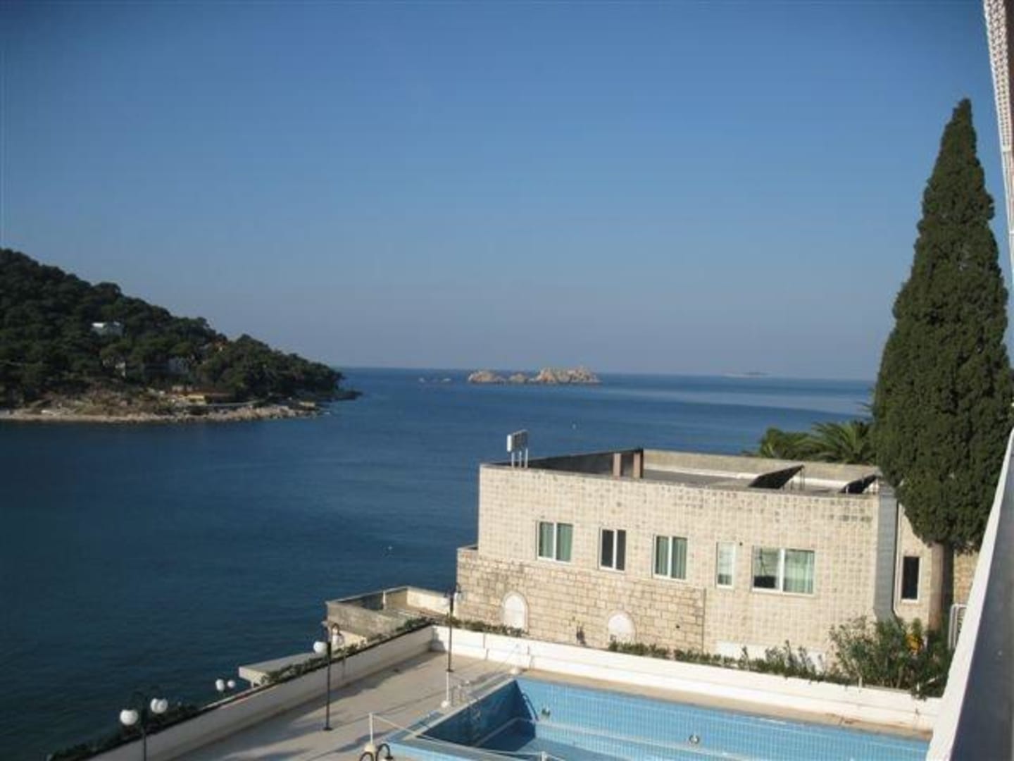 Blick vom Balkon mit Pool