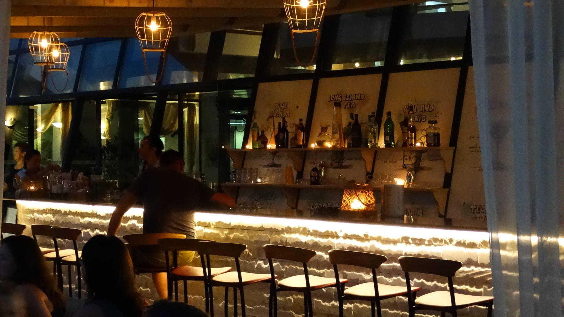 Beleuchtete Bar am Abend