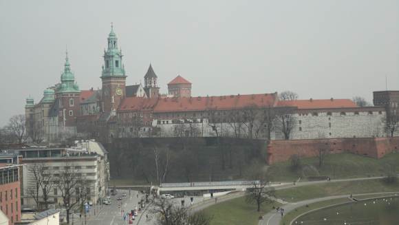 Uitzicht vanuit cafe over een kasteel