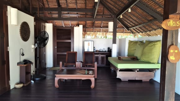 Offener Lounge-Teil der Beachvilla