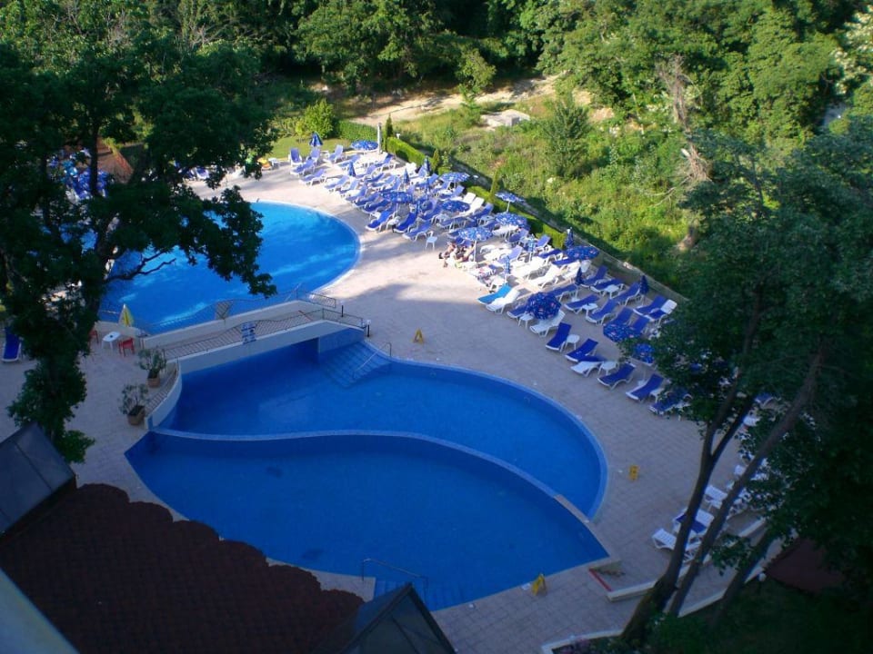 Blick auf den Pool vom 5. Stock (Zimmer mit Meerblick)