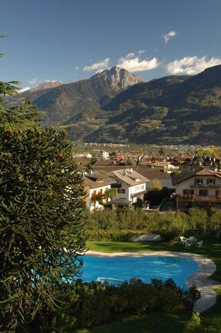 Vom Garteneingang über den Pool fotografiert