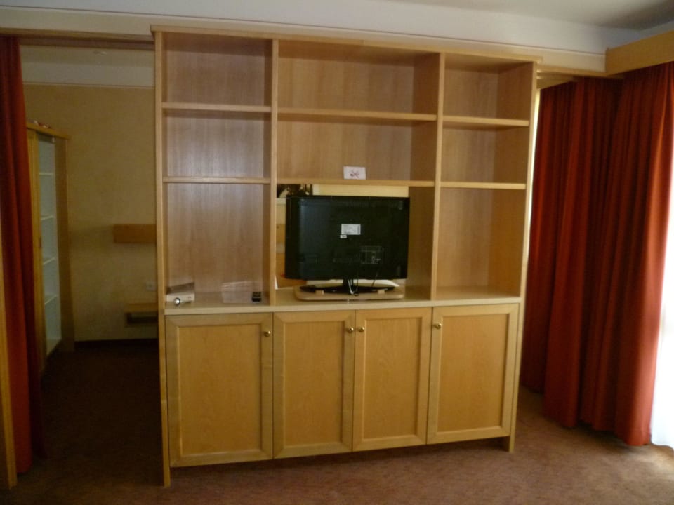 TV, dahinter das Doppelbett