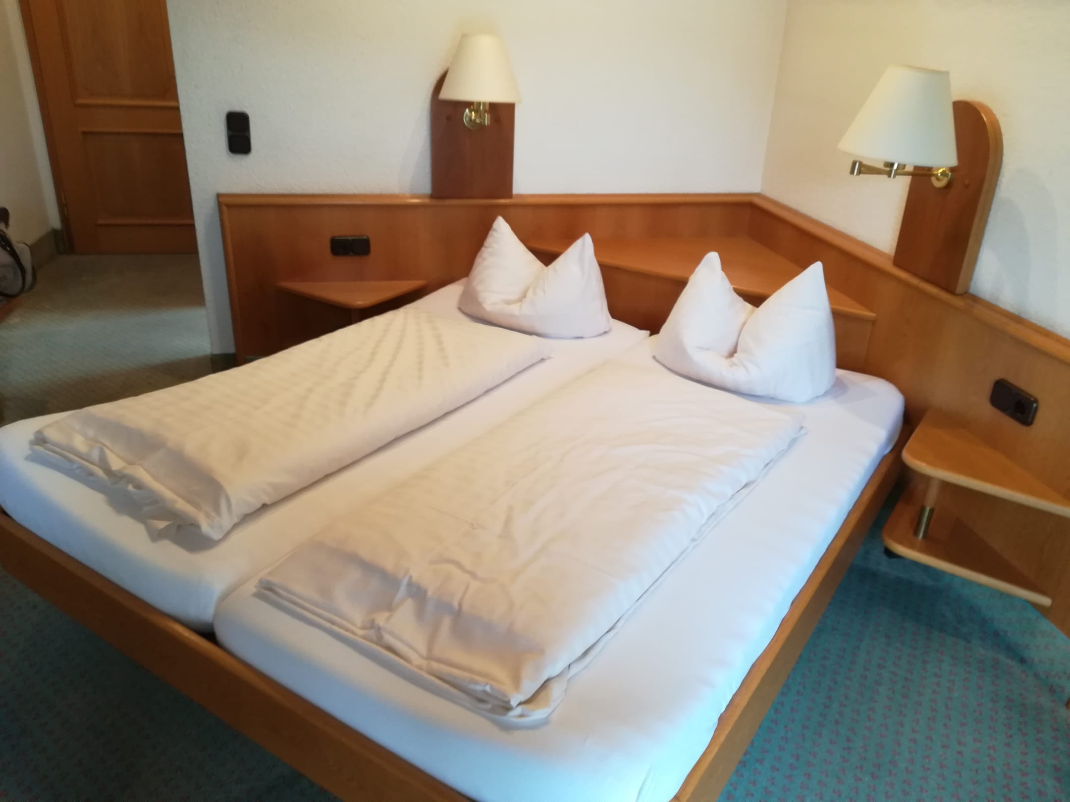 Zimmer 203 in der zweiten Etage mit seitlichen Ausblick ,die Betten sind sehr tief und knarren.