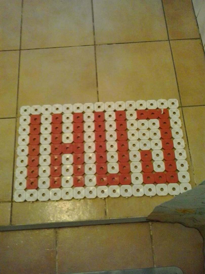 Taki napis zastałem po wyjściu spod prysznica. Hmmm...może to jakiś skrót (?), a może ktoś zrobił dowcip (?). Mata poza dziwnym napisem posiadała również "pięknego" grzyba od strony spodniej.