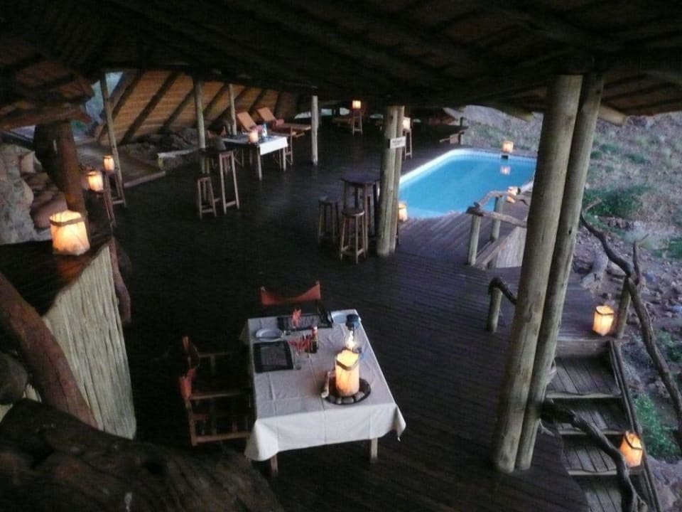 Weiterer RestaurantbereichWeitere Tische am Abend rund um den kleinen Pool. Leider ist das Bild etwas unscharf - aber für einen Eindruck reichts.