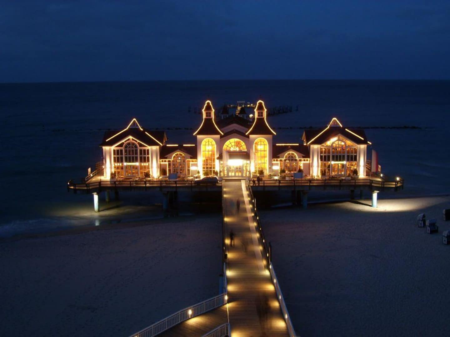 Blick abends auf die Seebrücke