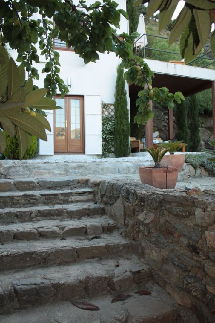 In der GartenanlageTreppe in der Gartenanlage; im Hintergrund die Eingangstür zum Doppelzimmer Superior, rechts daneben die überdachte Terrasse