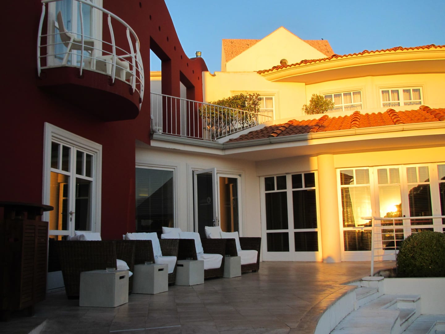 Blick vom Pool Richtung Terrasse und Restaurant
