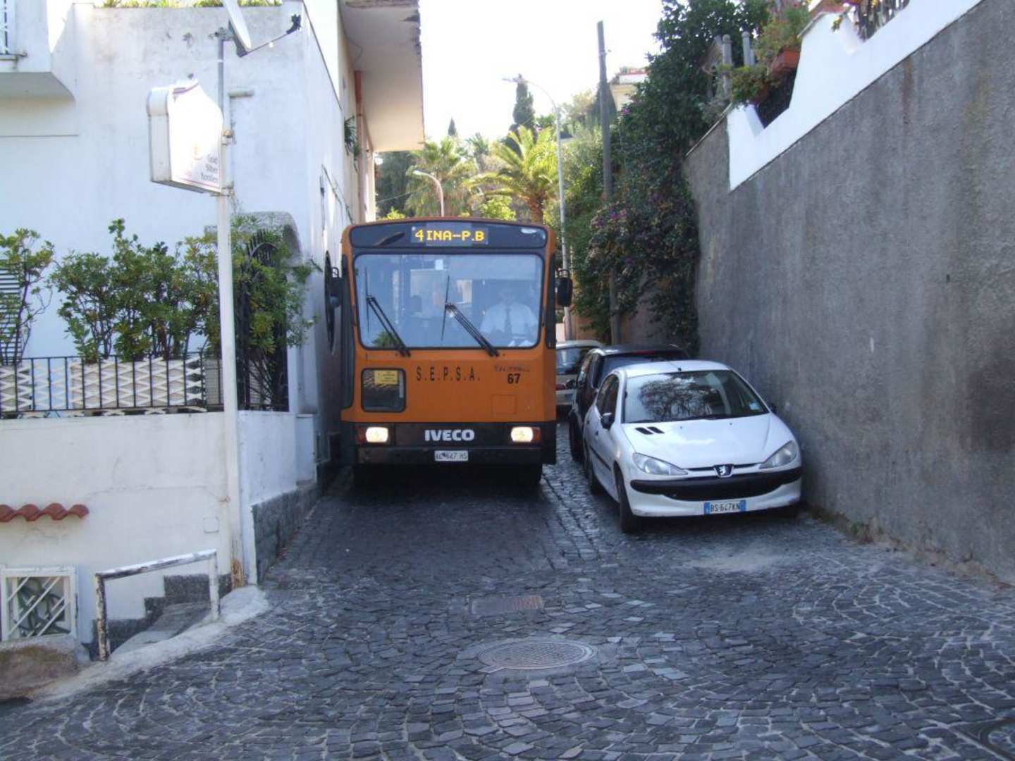 Jetzt wirds EngDer Bus kommt zur Haltestelle vor dem Hotel und das ist noch nicht die Engste Stelle auf seiner Route.