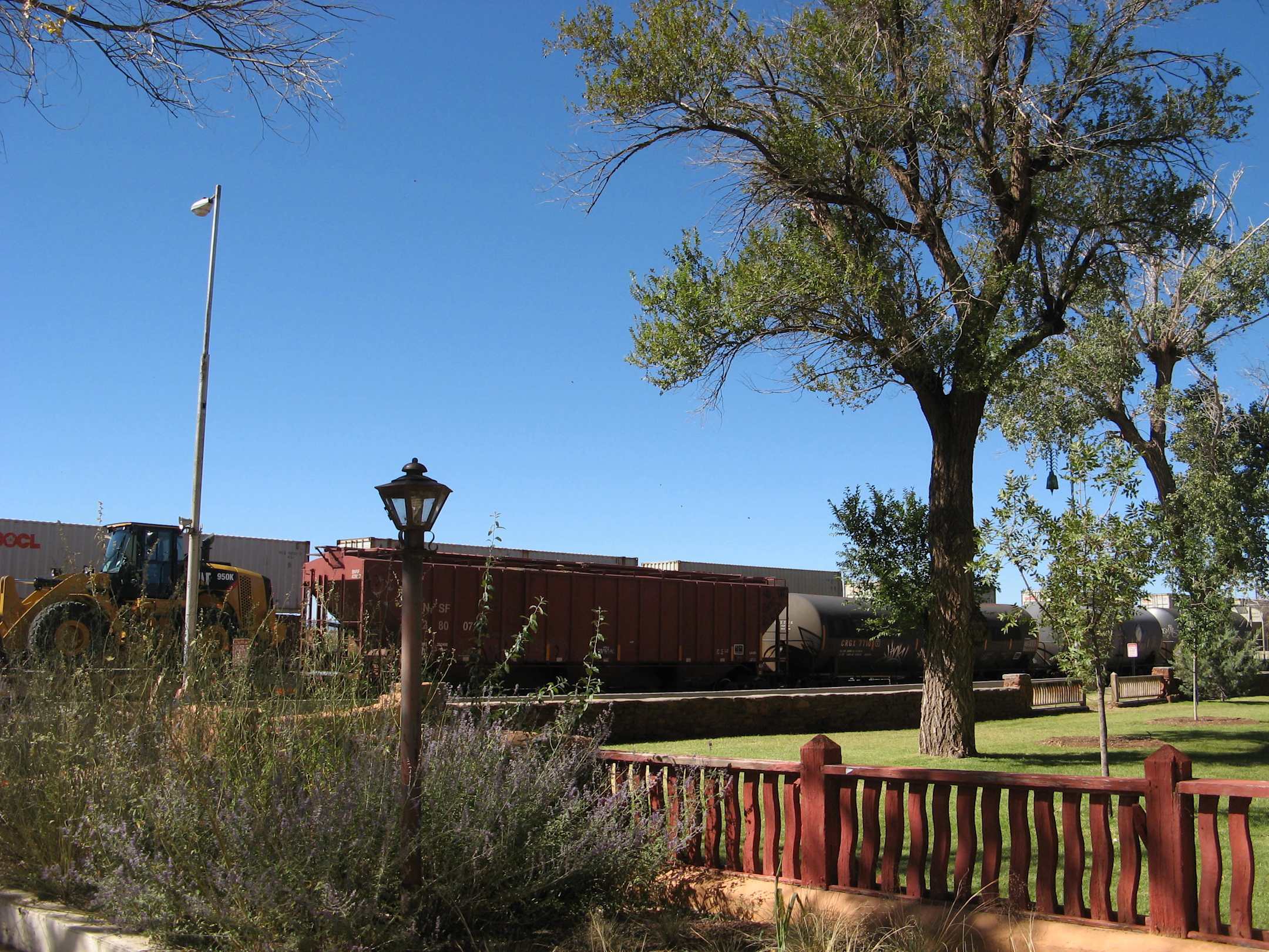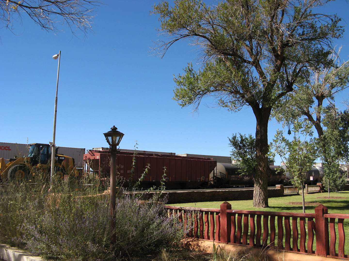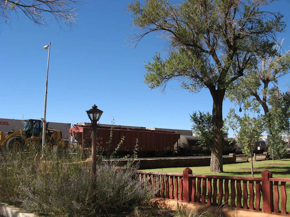 Blick über den Garten auf die Bahngleise