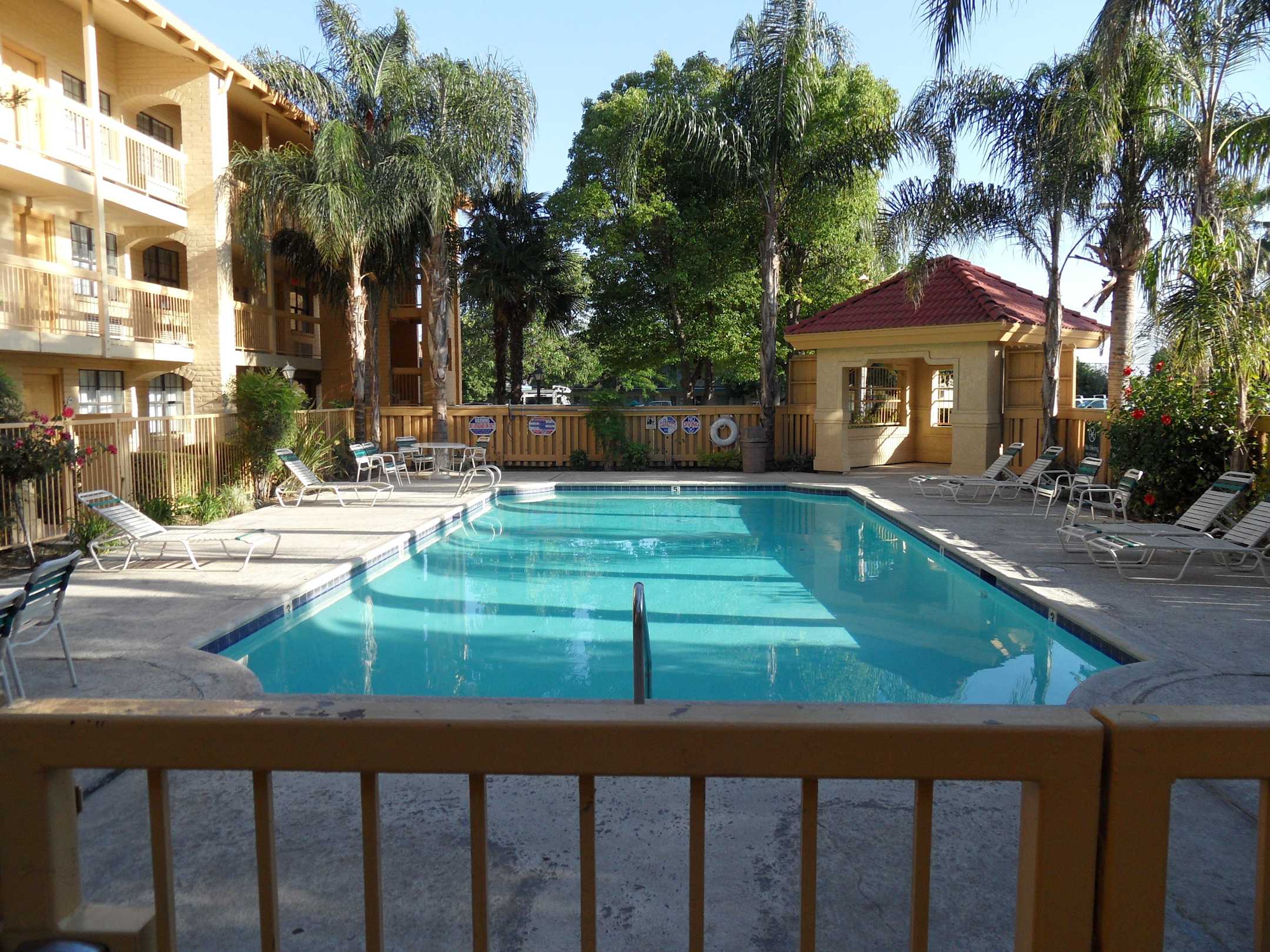 Pool, links daneben Zimmer