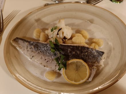 Hauptgericht gegrillter Saibling mit Gnocchi und Blumenkohl