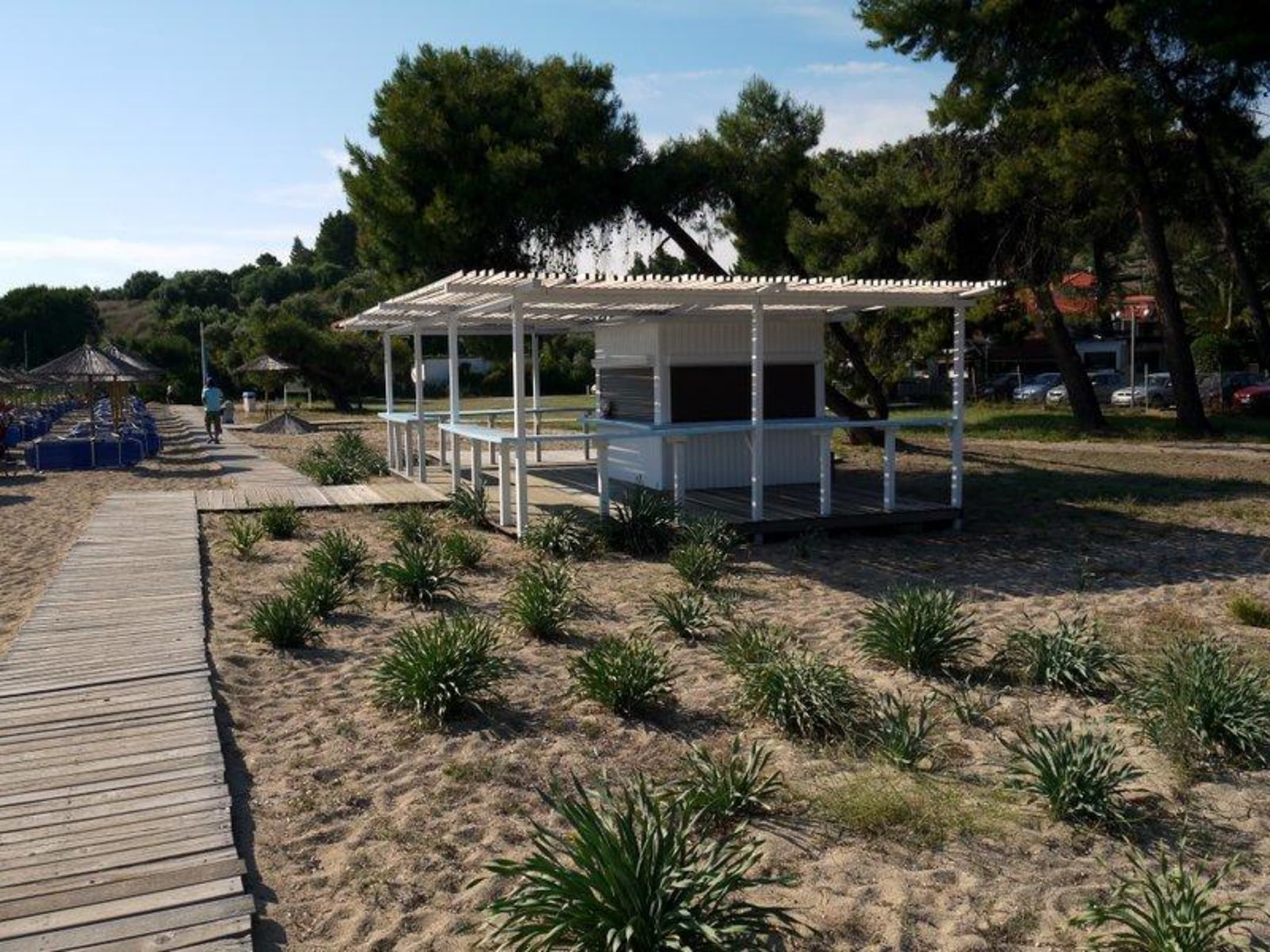 Liegen und Strandkiosk