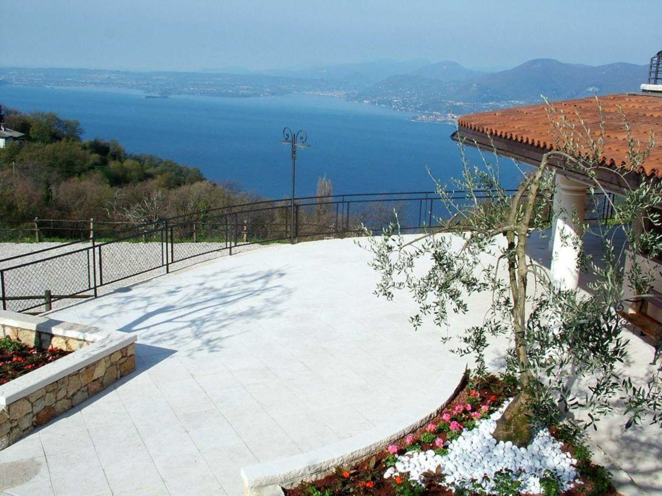 Blick über die Terasse des Hotels zum Gardasee