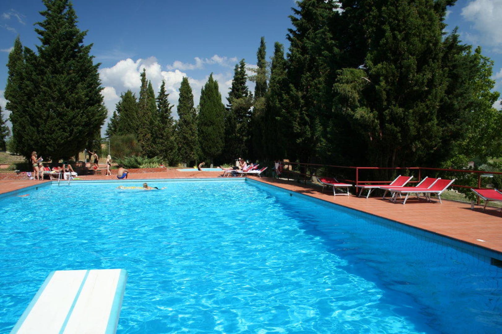 Pool ca. 25 x 15 m. Herrlicher Ausblick. Kinderpool separat. 2 Duschen. Nachteil: Im großen Pool nur kleiner Nichtschwimmer-Bereich (Wassertiefe 1,40 m), der ohne Absperrung steil auf 3,60 m (!) abfällt. Kleines Sprungbrett (ca 1,00 m)