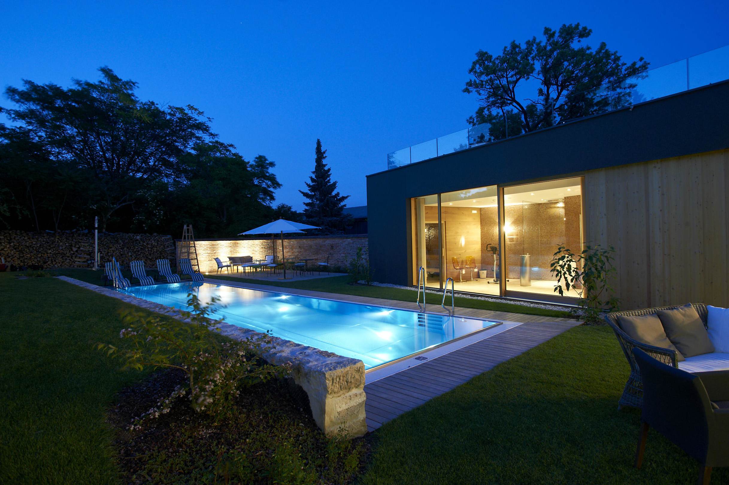 Night view swimming pool