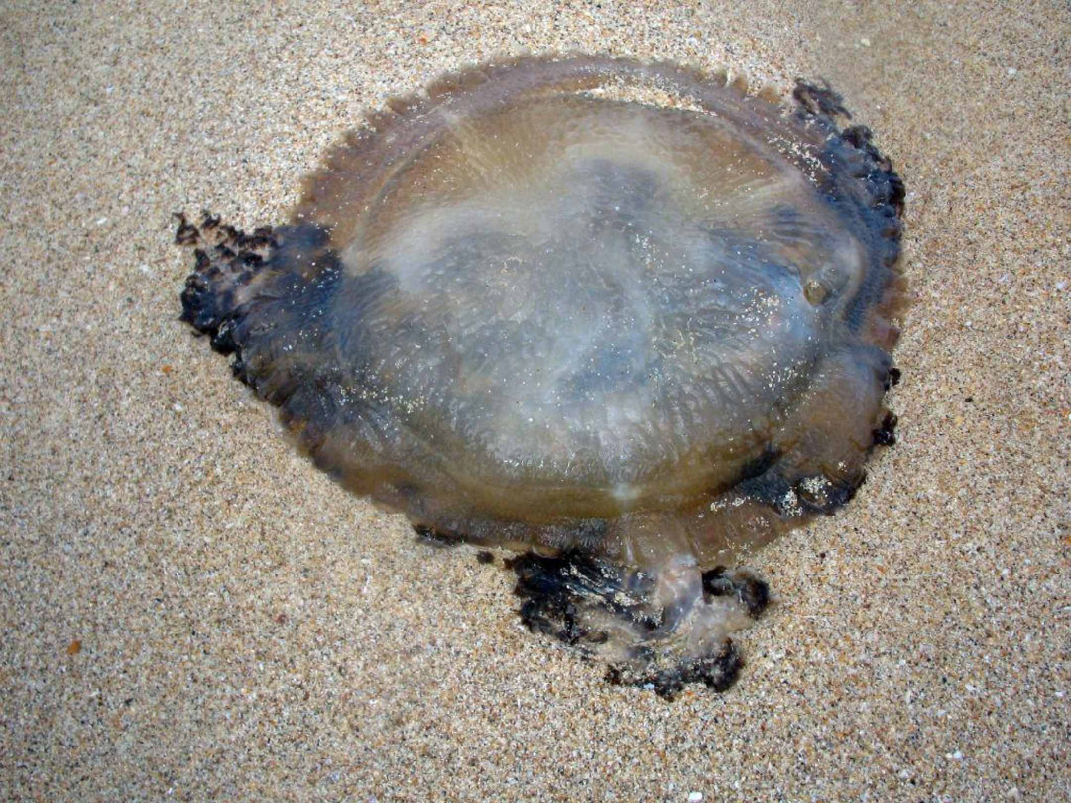 Nicht gefährlich ! .... aber der Hinweis,dass man auch nicht zu sorglos ins Meer gehen sollte ! Es könnten auch andere,unangenehmere Quallen da sein , ja nach Meeresströmung !