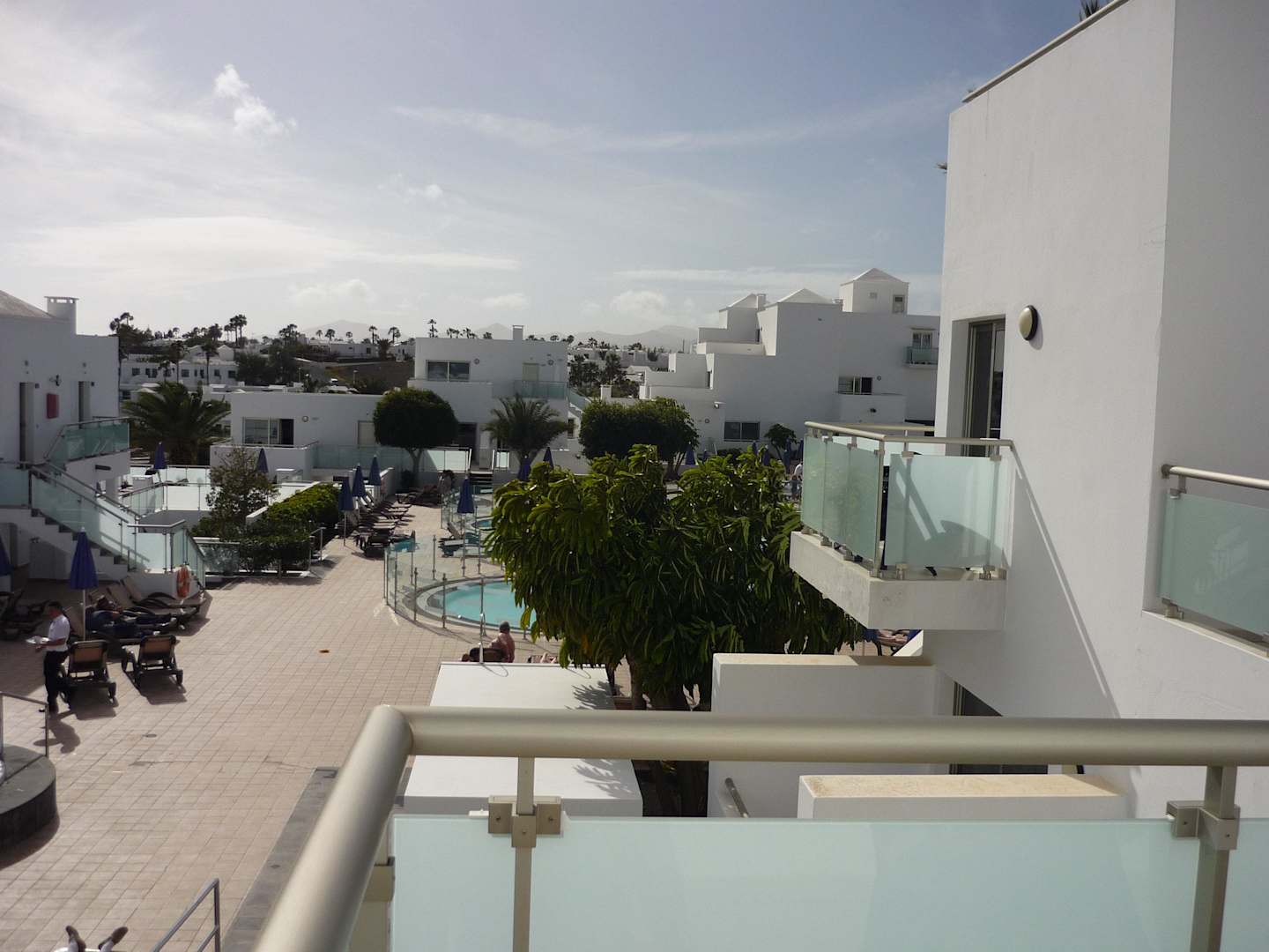 Seitlicher blick vom Balkon zum Pool