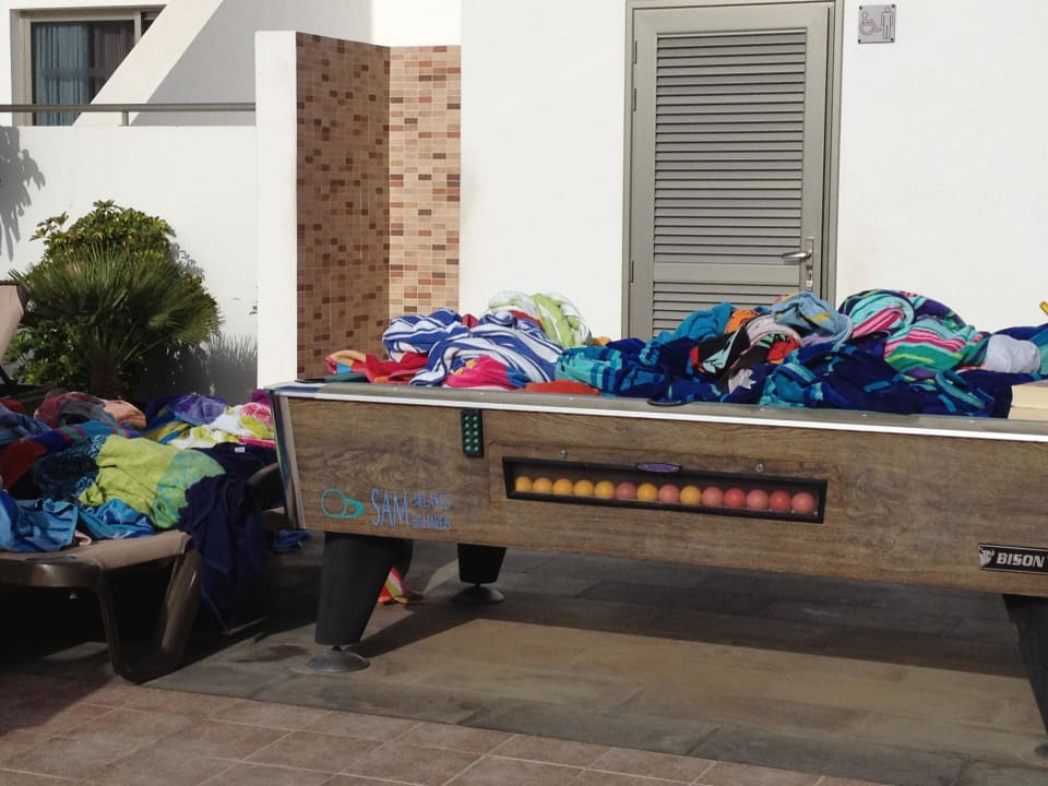 Eingesammelte Handtücher So sieht es aus wenn das Personal die Handtücher von den Liegen einsammelt. Denn reservieren ist verboten. ZU RECHT