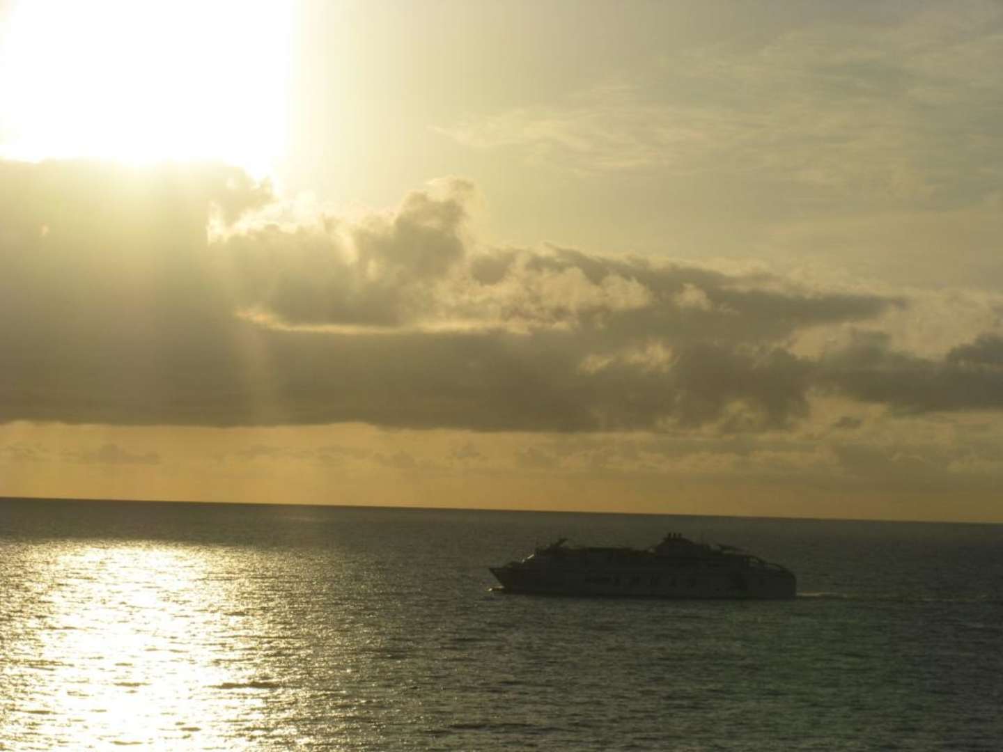 Aparthotel Las OlasSonnenaufgang mit Faehre vom Balkon