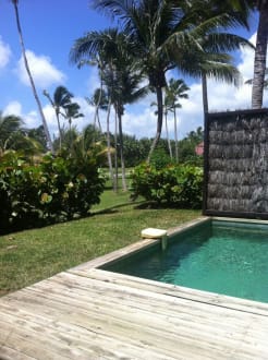 Durch Glück kamen wir zu einer Deluxe Suite mit Mini Pool und Mini Garten.