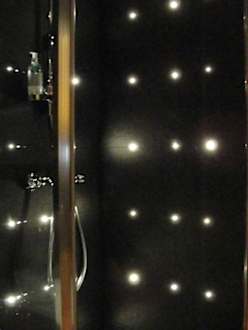mit indirekter Beleuchtung durch LED-Lämpchen in den Fugen! Farbdusche inkl. ;-)