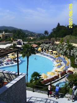 Blick vom Balkon zum Pool