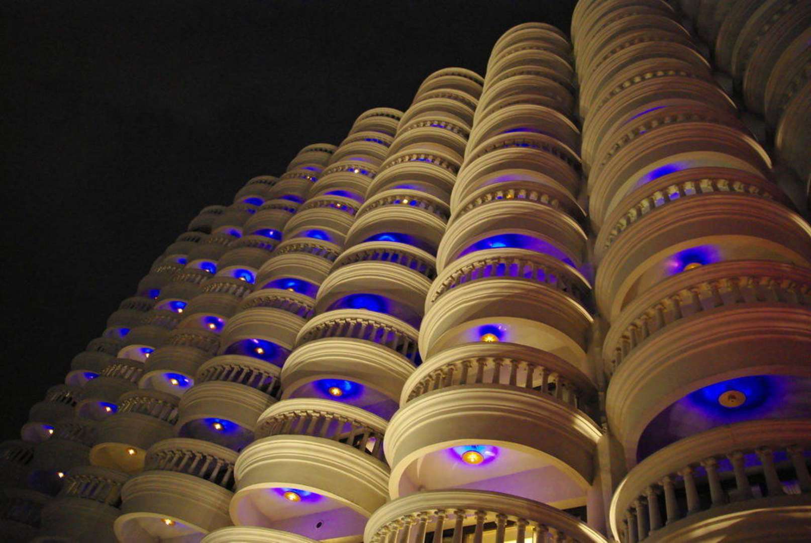 Blick vom Restaurant Breeze im 52. Stock auf die Balkone der obersten Stockwerke.