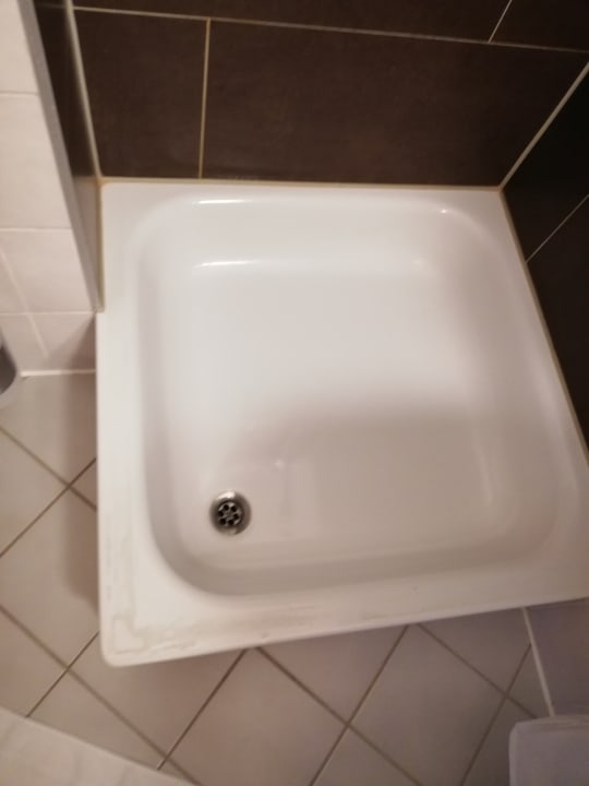 Überreste einer Duschkabine sichtbar