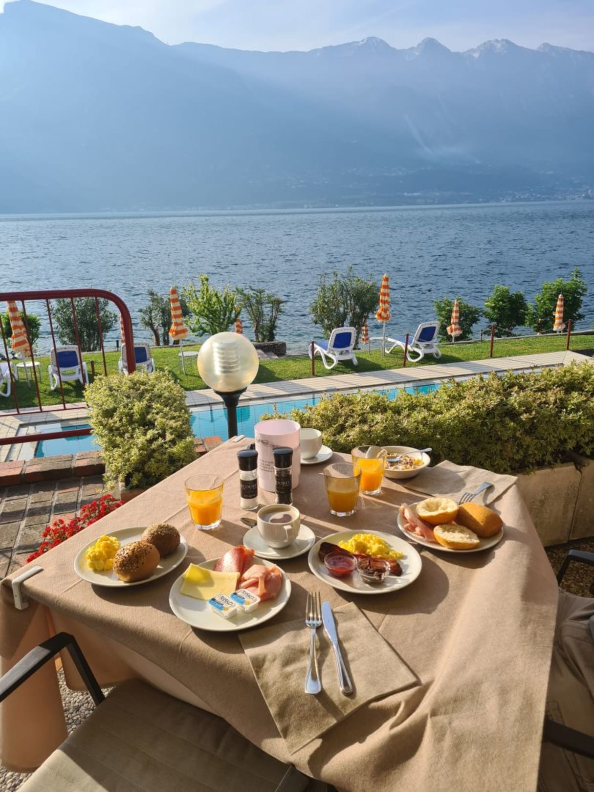 Frühstück mit Blick auf den See und dem Pool