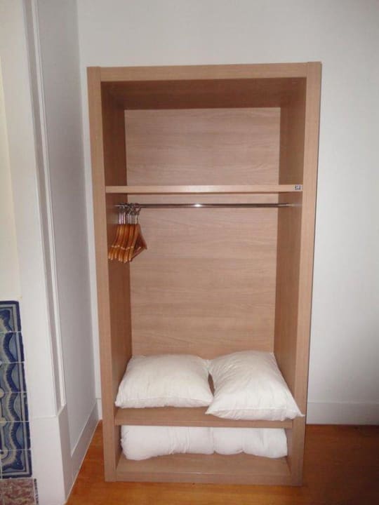 Offener Kleiderschrank, für zwei Personen viel zu wenig Platz...