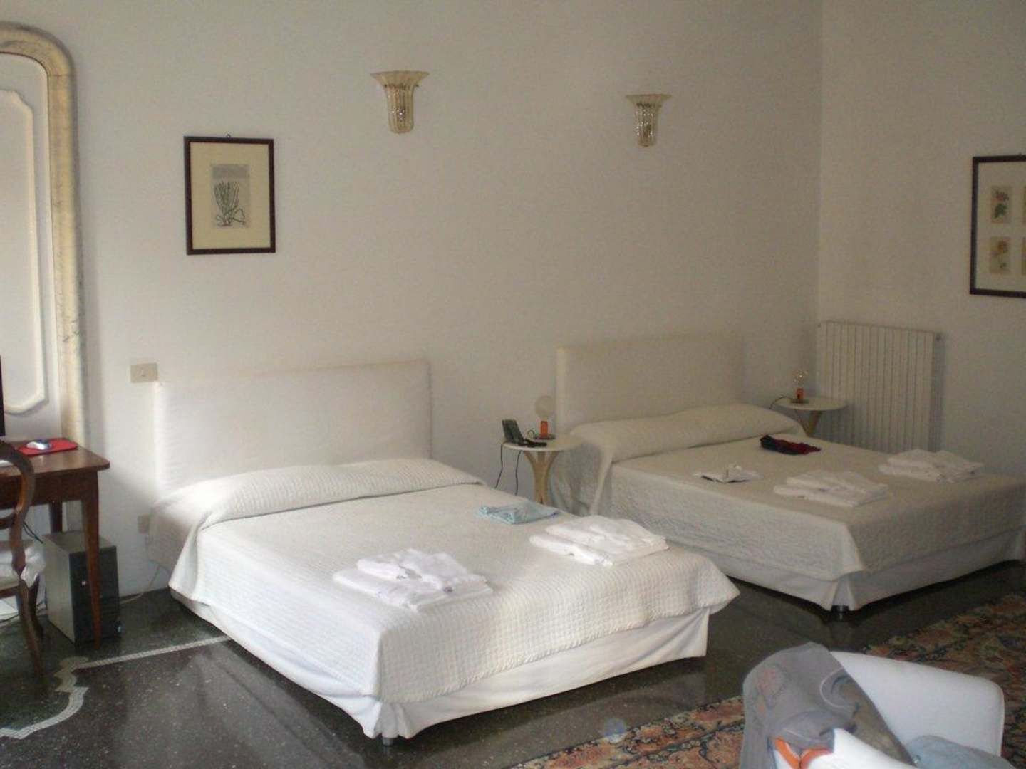 Platz zum Ausbreitenzwei große Doppelbetten im ca. 60 m2 großen Zimmer mit Terrazzoboden bieten auch für eine 4-köpfige Familie ausreichend Platz