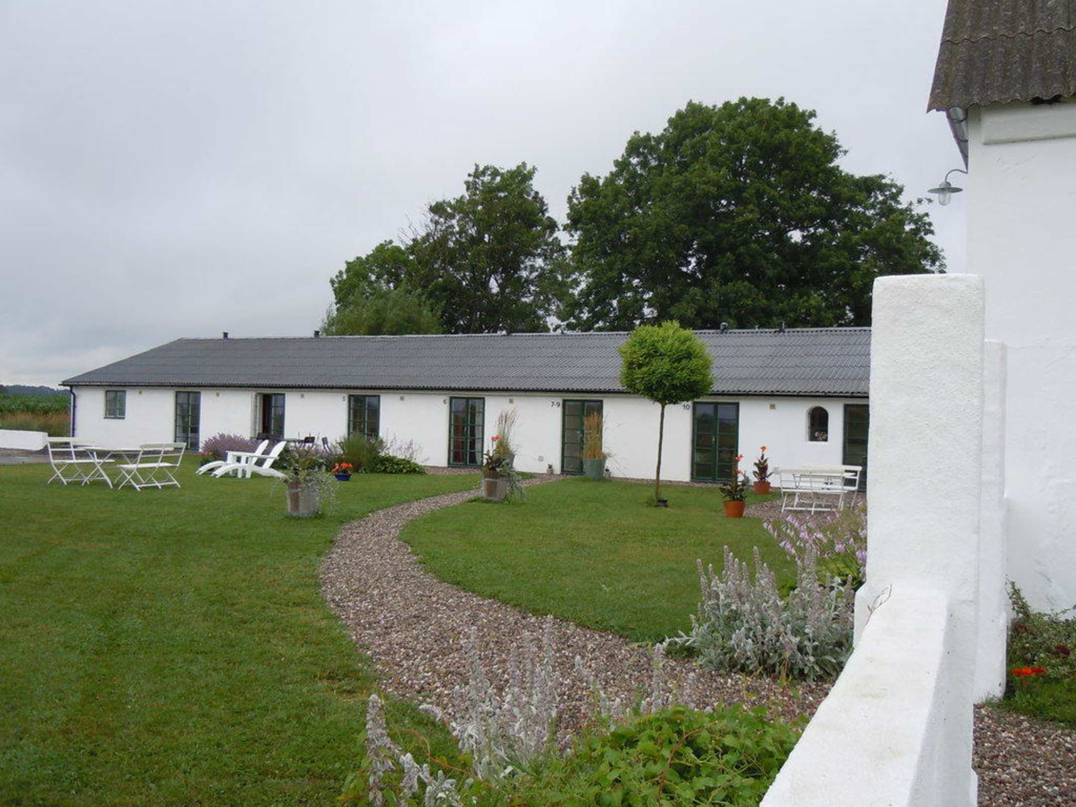 Blick vom Garten auf die Zimmer